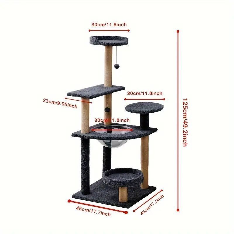 キャットタワー キャットツリー キャットハウス 猫用品 透明カプセル 据え置き 猫タワー 据え置き型 おしゃれ 125 cm 麻紐 ファブリック 猫 キャット タワー 爪とぎ