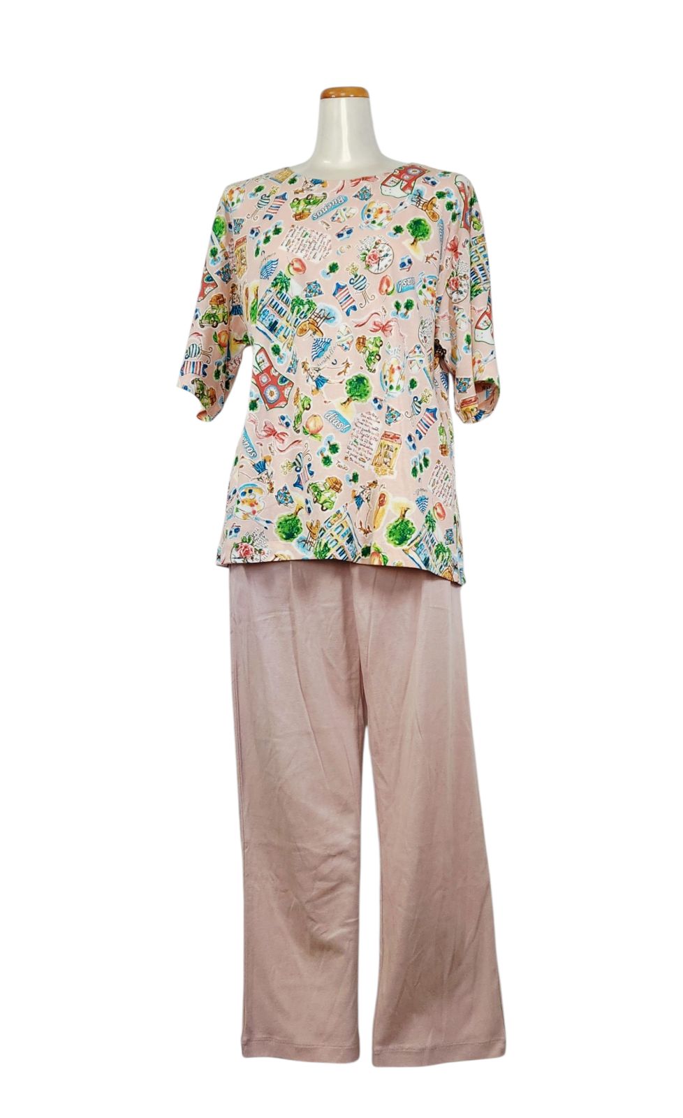 鴨居羊子パジャマ ♥ TUNIC 秋物長袖 5分袖パジャマ 50強撚フライス Tエスパーニャ 33326 肌ピンク色日本製