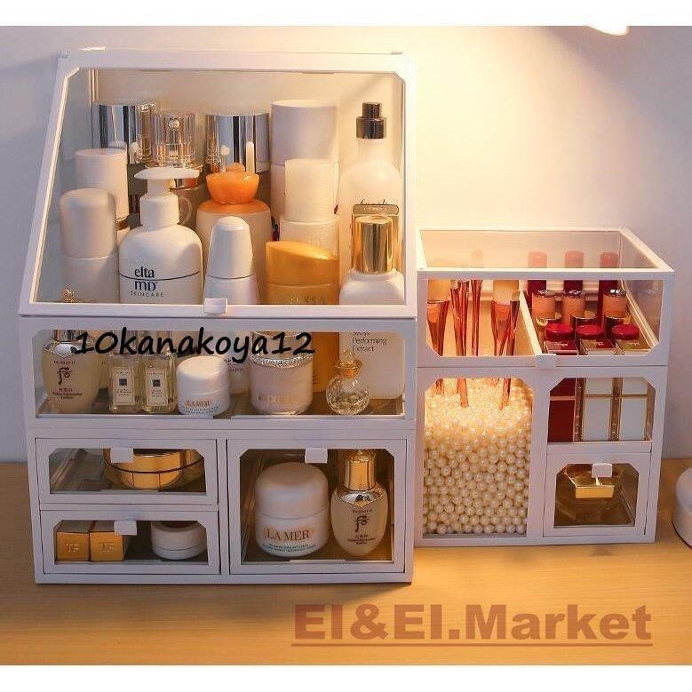 メイクボックス 組立不要 大容量 化粧品ケース メイク収納 ボックス 引き出し式 防水 防塵 蓋付き スキンケア用品卓上収納 寝室 浴室 洗面所 家庭用コスメボックス