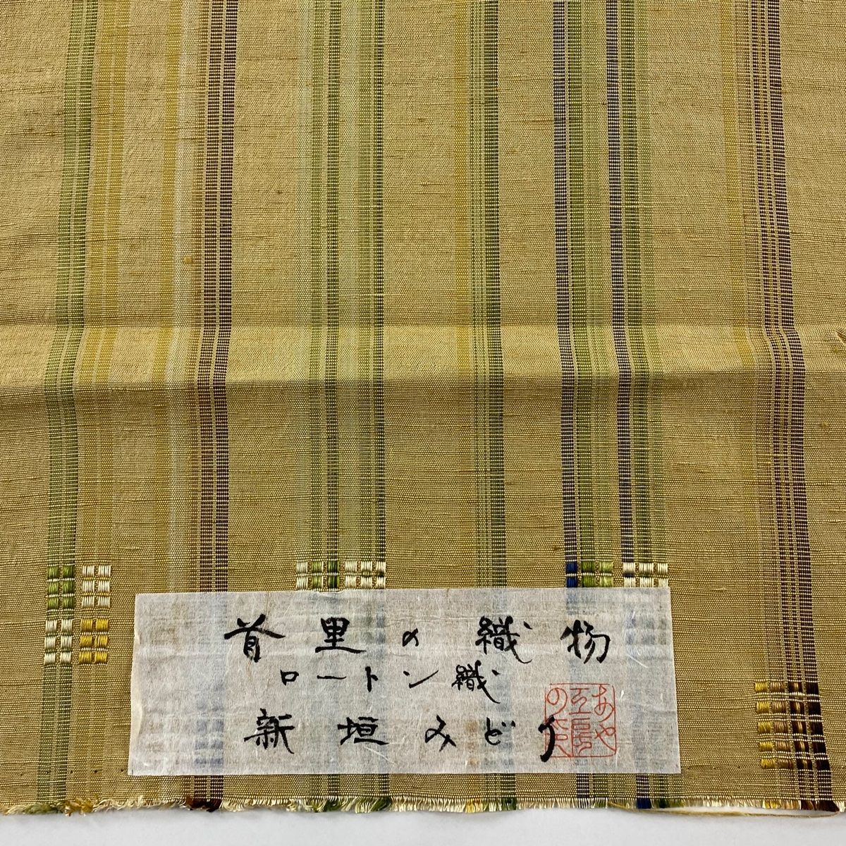 付け帯 落款 作り帯 紬地 ロートン織 新垣みどり 縞模様 薄茶色 正絹