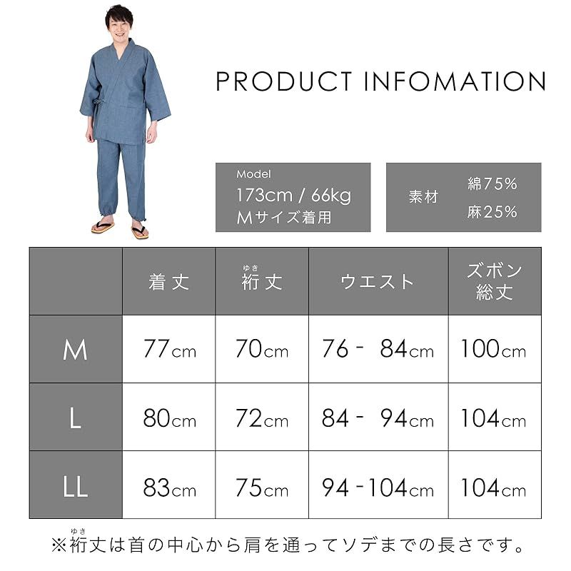 しなやかな風合いで滑らかな肌触りを実感できる、夏の定番素材「綿×麻」の作務衣です。