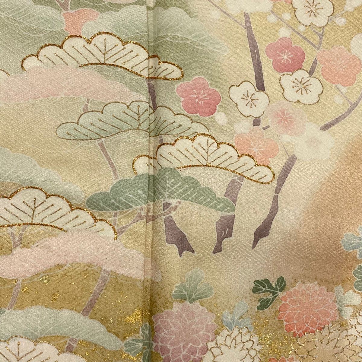 訪問着 身丈167.5 cm 裄丈66 M 袷 松竹梅 菊 金糸 金彩 ベージュ 正絹 秀品