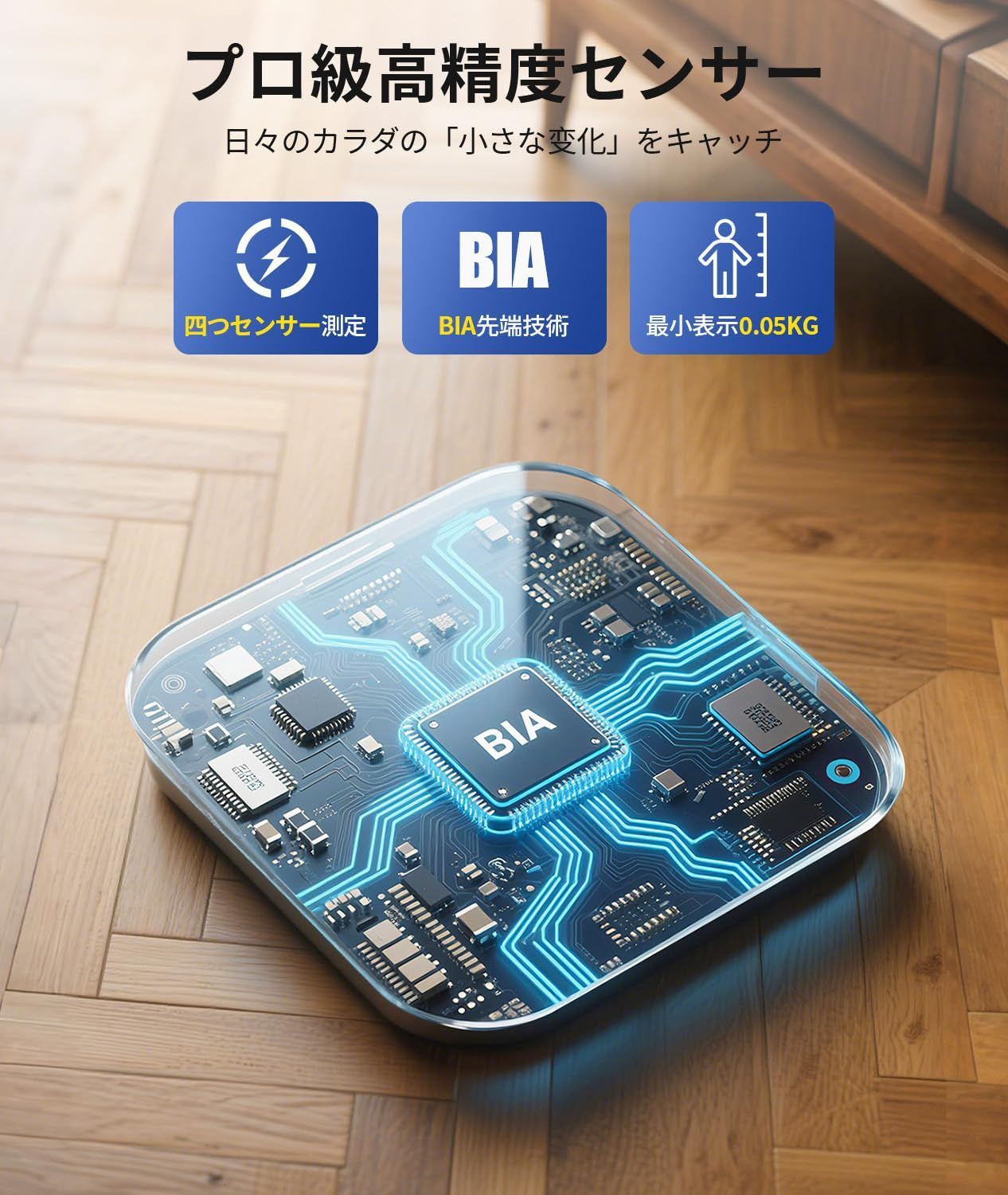 【Bluetooth5.1瞬時転送】乗るだけで自動測定&瞬時転送のスマート体組成計。最新Bluetooth5.1により、従来比2倍の転送速度で、測定結果が即座に専用アプリに記録されます。接続の途切れ知らずで、毎日の健康管理がよりスムーズに。