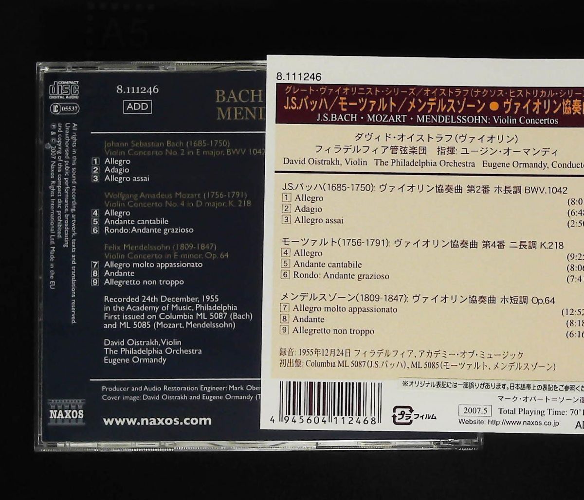 メンデルスゾーン モーツァルト バッハ ヴァイオリン協奏曲 CD オイストラフ オーマンディ J S メンデ