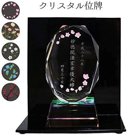 位牌 クリスタル位牌 4寸 七色台座 桜 四季 ホログラム入り アクリル台座 つき 選べるデザイン 季節の花 朝顔 秋桜 梅 小花 仏具 遺影 デザイン モダン 手元供養 名入れ 刻印サービスつき