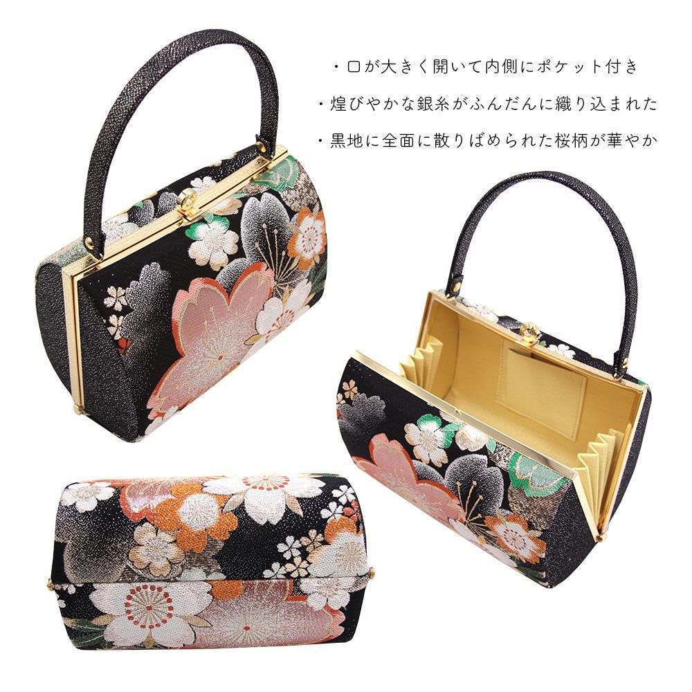 草履バッグ 草履バック 草履バッグセット 銀糸 桜 黒 正絹帯地 シック 振袖 成人式 卒業式 フリ サイズ WA-Z-93