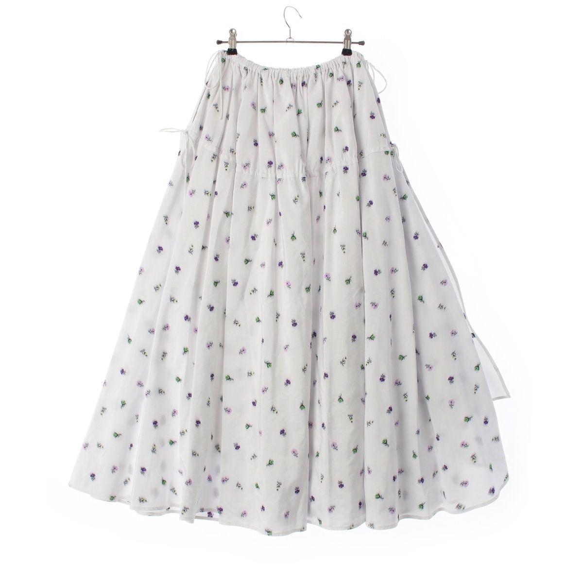 ドゥロワー 22 AW 小花柄 総柄 ジャガード タフタ イージー ロング スカート ボトムス 6524-299-1708 ホワイト 36