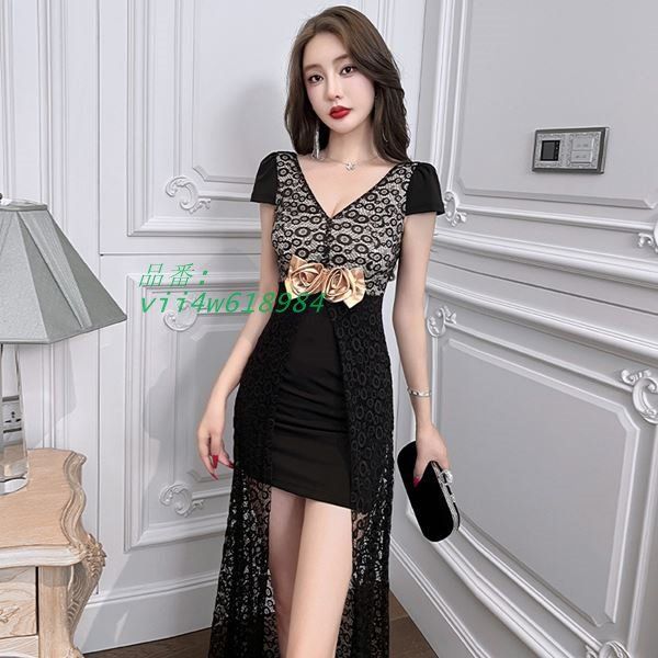 セクシー ドレス キャバドレス ミニドレス 大きいサイズ レース切替ウエスト花モチーフのセクシーインナーミニロングドレス M L 4 3 サイズ S 2 vii w 618984