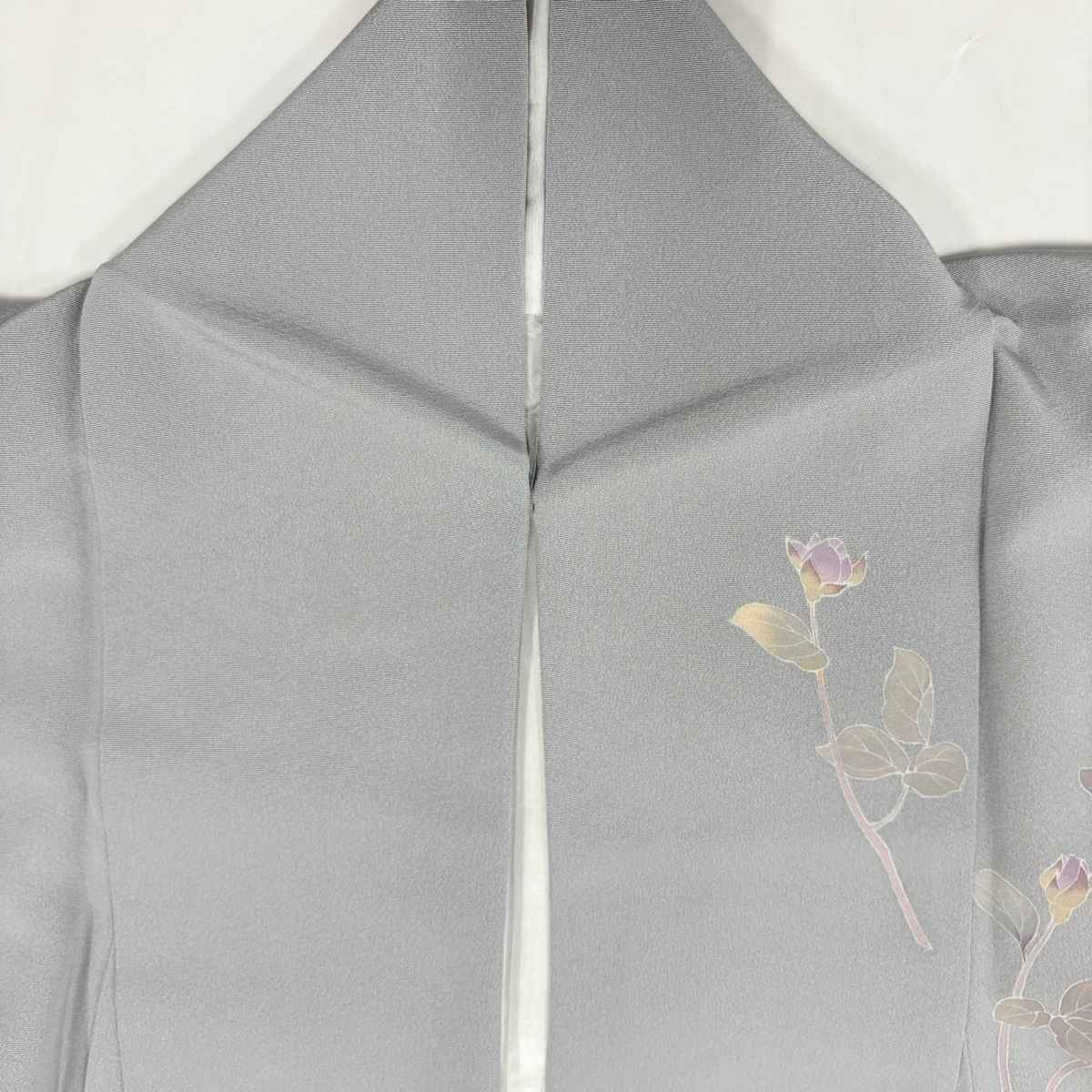 訪問着 身丈169 cm 裄丈63.5 S 袷 落款 枝花 灰色 正絹 秀品 一つ紋