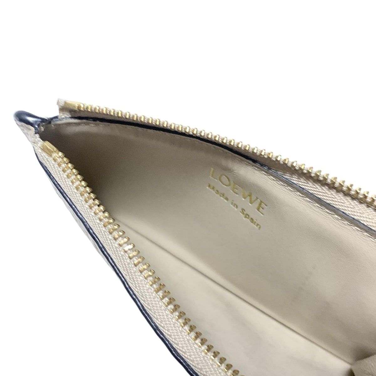 ロエベ コインケース リピート コインカードホルダー グレーベージュ 型押し加工 L字ファスナー カードケース付き シルク