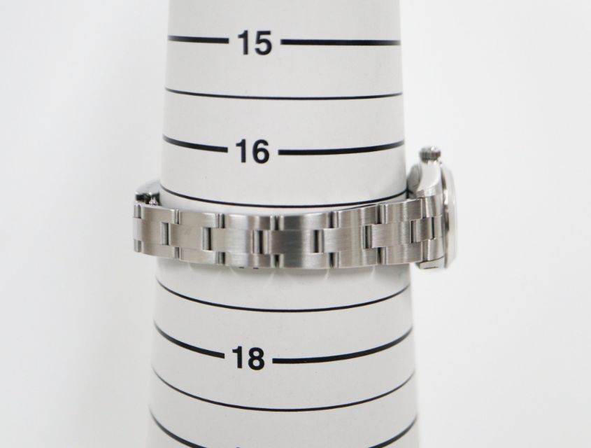 ロレックスのモデルの中でも文字盤の種類が豊富なオイスターパーペチュアル。こちらはシンプルなシルバー/バー文字盤です。