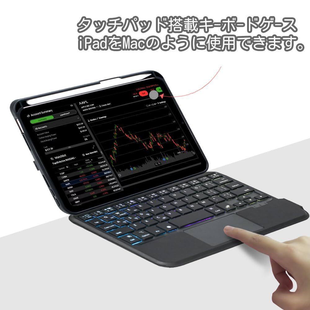 高精度タッチパッドとキーボードが付いた保護ケースは、iPad mini 7世代とmini6世代の両方に対応しています。7色のバックライトを備えたBluetoothキーボードが付属し、Apple Pencilを収納でき、Type-C接続による急速充電が可能です。オートスリープ機能と全面保護、多角度調整が可能な一体型デザインで、持ち運びも作業効率も向上します。US配列のキーボードですが、日本語説明書が付属し、JIS平仮名配列にも対応しています。8.3インチの画面に合わせて設計された高機能ケースです。