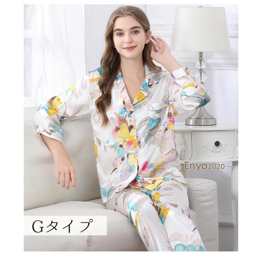 シルク パジャマ 花柄 レディース 上下セット シルクパジャマ 絹 ルームウェア 2点セット 長袖 シャツ ロング パンツ シルクサ