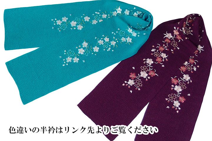 半衿 半襟 半えり 刺繍 振袖 成人式 二十歳の記念 はたち 桜 さくら 花 青 正絹 鬼しぼちりめん 縮緬 レディース 卒業式 袴姿 はかま フォーマル モダン 個性的 z 747