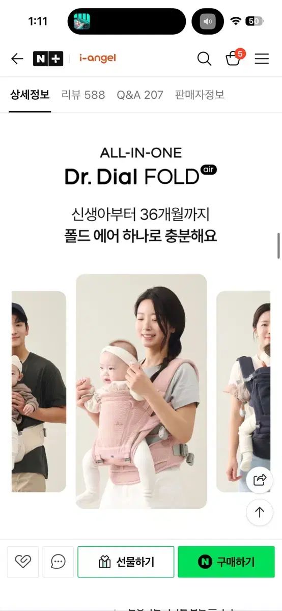 出産祝いとしていただいたアイエンジェル ドクターダイヤル フォールドエアー ベビーキャリーを販売します :)