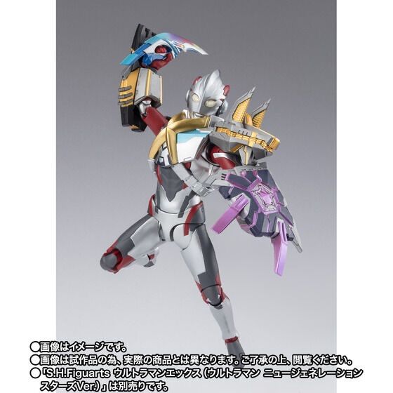 円谷プロダクション造形部門LSS協力のもと、「ベータスパークアーマー」と「ハイブリッドアーマー」を劇中のイメージで立体化。それぞれ、別売りの「S.H.Figuarts ウルトラマンエクシードX」、「S.H.Figuarts ウルトラマンエックス(ウルトラマン ニュージェネレーション スターズVer.)」と組み合わせることで、「ウルトラマンエクシードX ベータスパークアーマー」、「ウルトラマンエックス ハイブリッドアーマー」を再現可能!