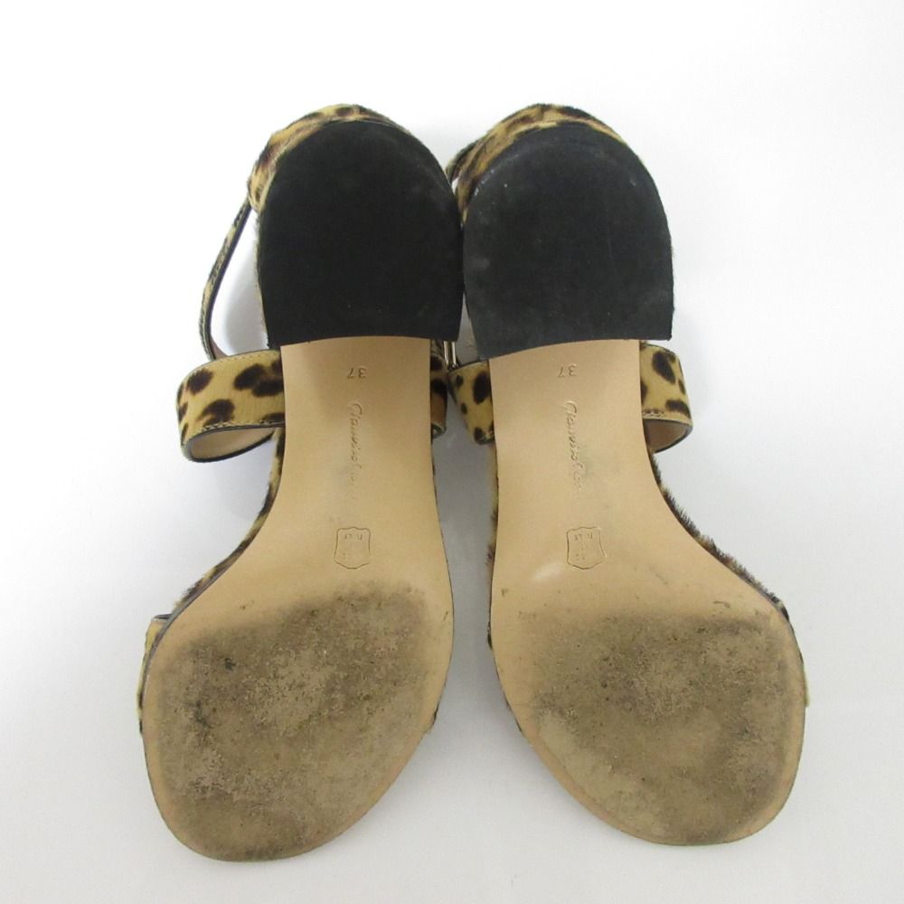 Gianvito Rossi ジャンヴィトロッシ レオパード ハラコ ストラップ チャンキーヒール サンダル サイズ37 24 cm キャメル レディース 古着