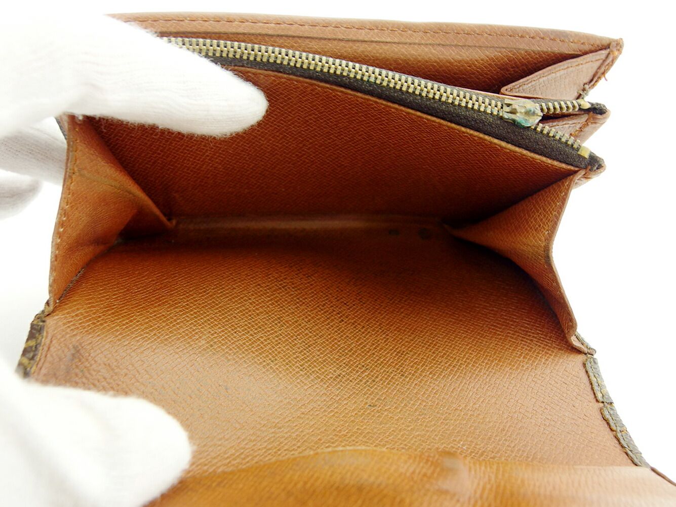 ルイ ヴィトン LOUIS VUITTON 二つ折り財布 モノグラム ポルトモネジップ ブラウン ベージュ レディース