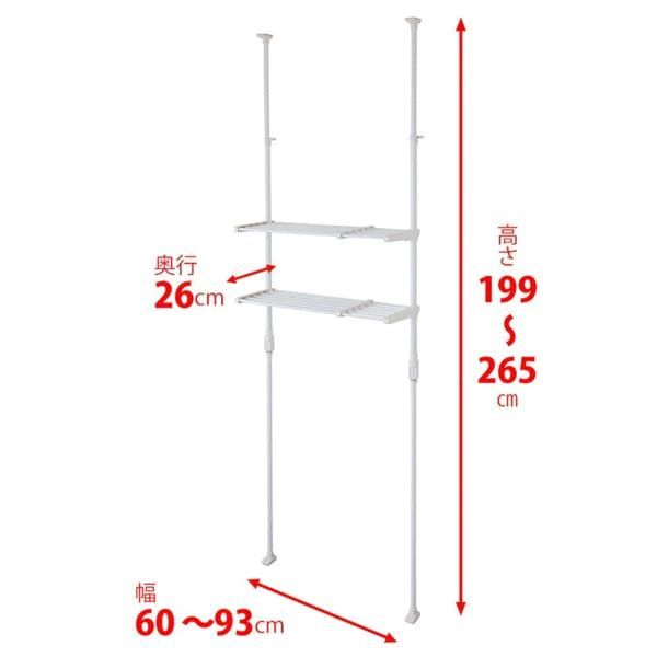 L 突っ張り伸縮ランドリーラック ホワイト 幅60〜93 cm 高さ199〜265