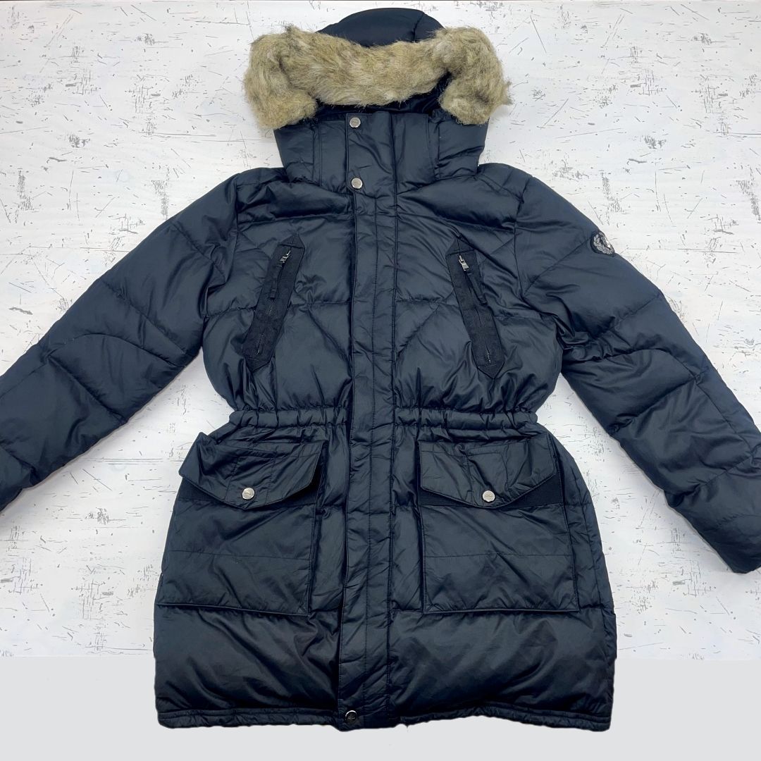 US古着 POLO RALPH LAUREN ポロラルフローレン ファー付きダウンコート キッズ 女の子 ブラック
