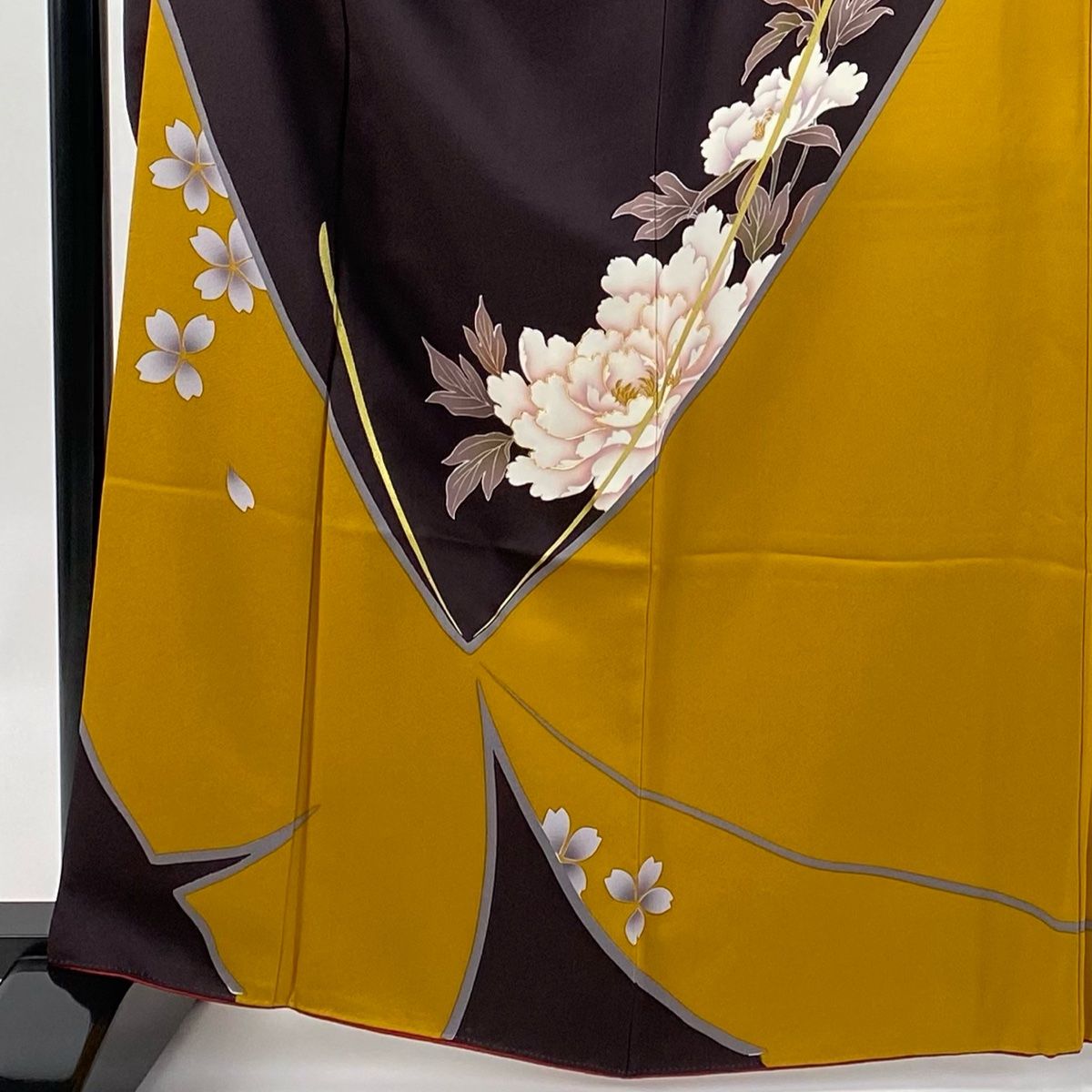 振袖 身丈163.5 cm 裄丈67.5 L 袷 蝶 牡丹 金糸 金彩 茶紫 正絹 名品