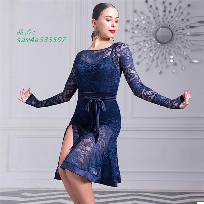 社交ダンス衣装 テンダンス 演技服 レース ワンピース タンゴ服 2点セット パーティー用 ワルツ イベント モダンドレス am 4 a 535507