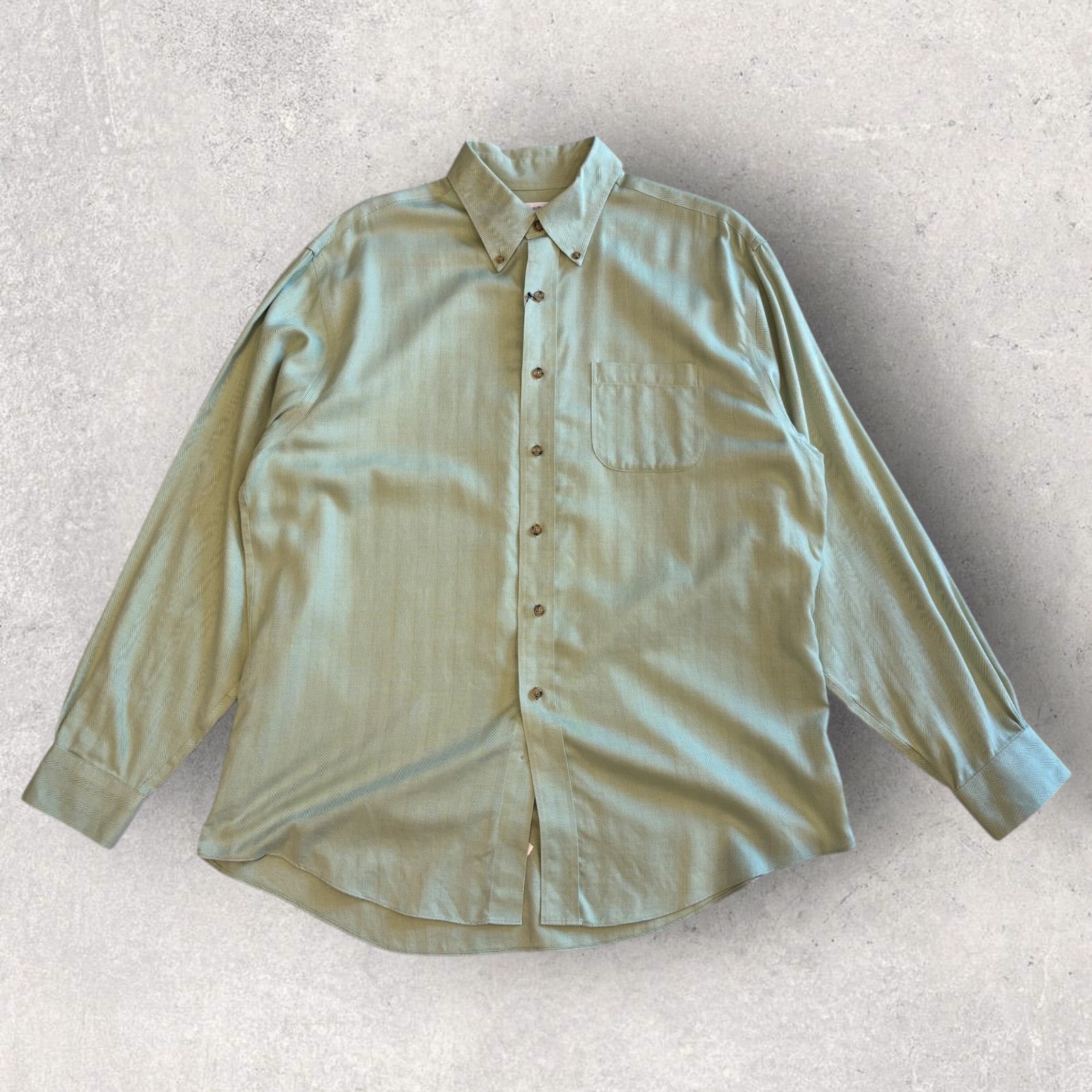 BROOKS BROTHERS ブルックスブラザーズ ドレスシャツ ヘリンボーン織 カシミヤ混 XL ライトグリーン 古着