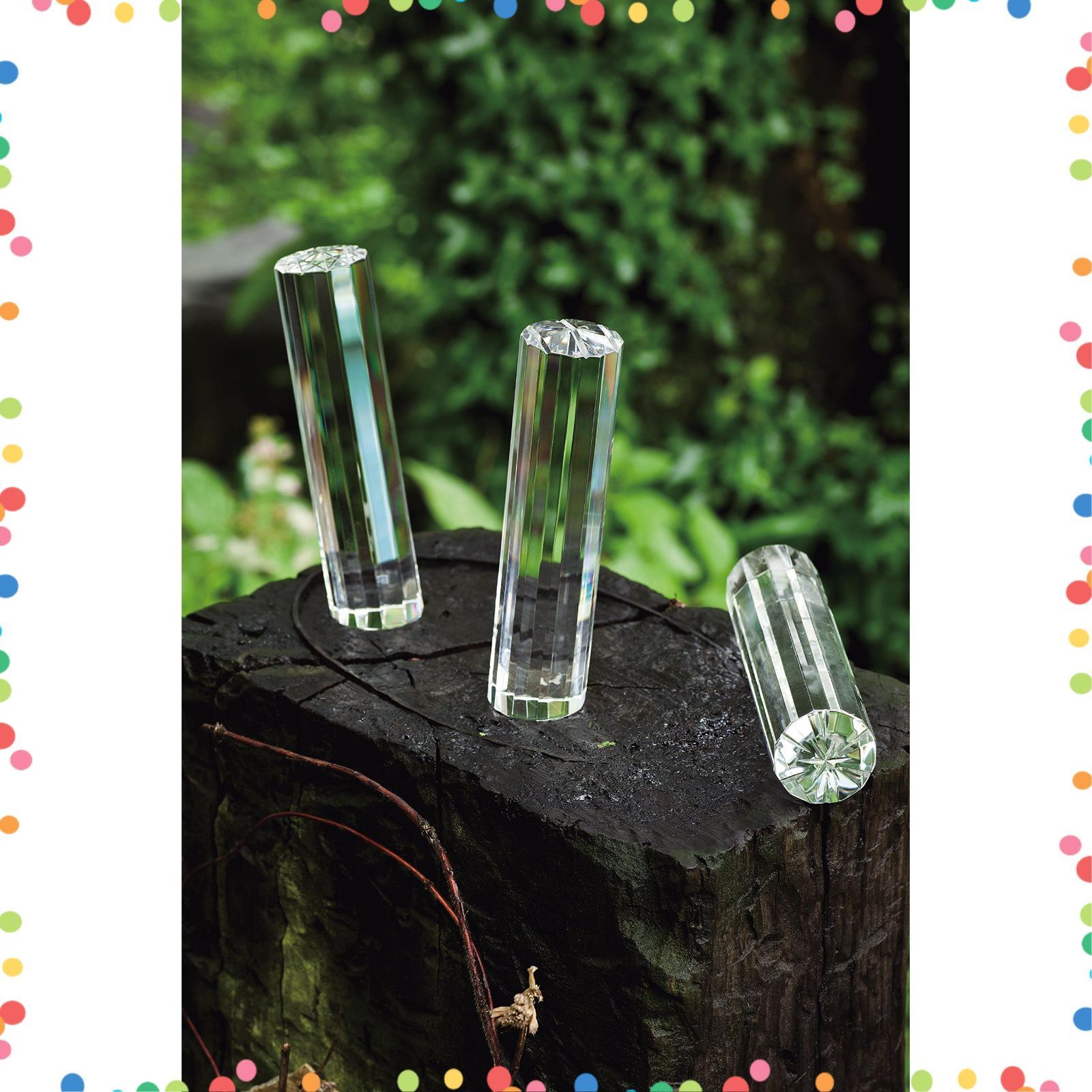 【硝子の万華鏡】透明な素材の固まりから削りだした万華鏡。