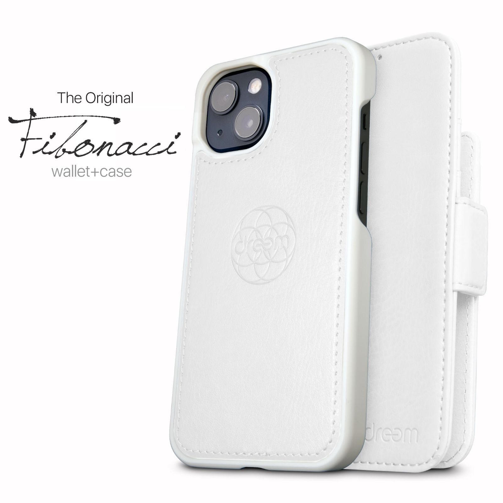 Dreem フィボナッチ(Fibonacci)2イン1 財布型ケース Apple iPhone 14 Plus用 - 高級ヴィーガンレザー製 マグネット着脱式 耐衝撃 携帯電話ケース RFIDカード保護機能 2通りに使えるフリップスタンド付き - ホワイト