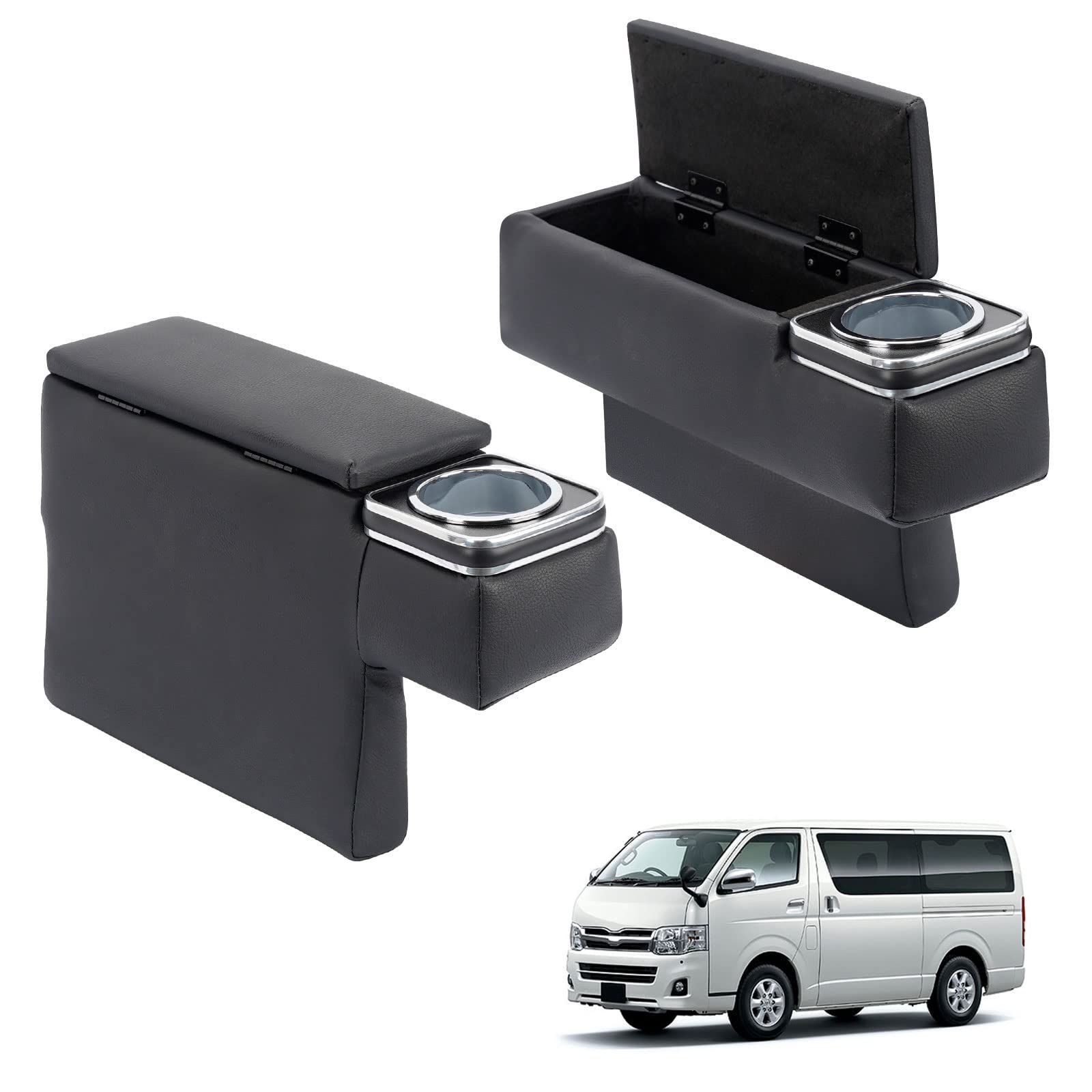 BUYFULL コンソールボックス ハイエース 200系 2個セット アームレスト付き 小物入れ収納ボックス 肘置き 落下防止 PUレザー 内装カスタムパーツ H200系 標準/ワイド GL・スーパーGL 1型~8型(2004.8~現行)