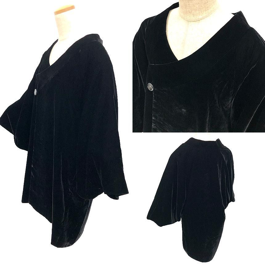 [商品名]京やM455 着物コート 和装冬コート ベルベットコート ベロア 袷仕立て ラグラン袖 舟底袖 千代田衿 セミロング丈 黒 ブラック フォーマル・カジュアル兼用 仕立て上がり オンワード樫山謹製 道行 道中着 羽織 塵除け 風除け リサイクル着物【美品】【新品】