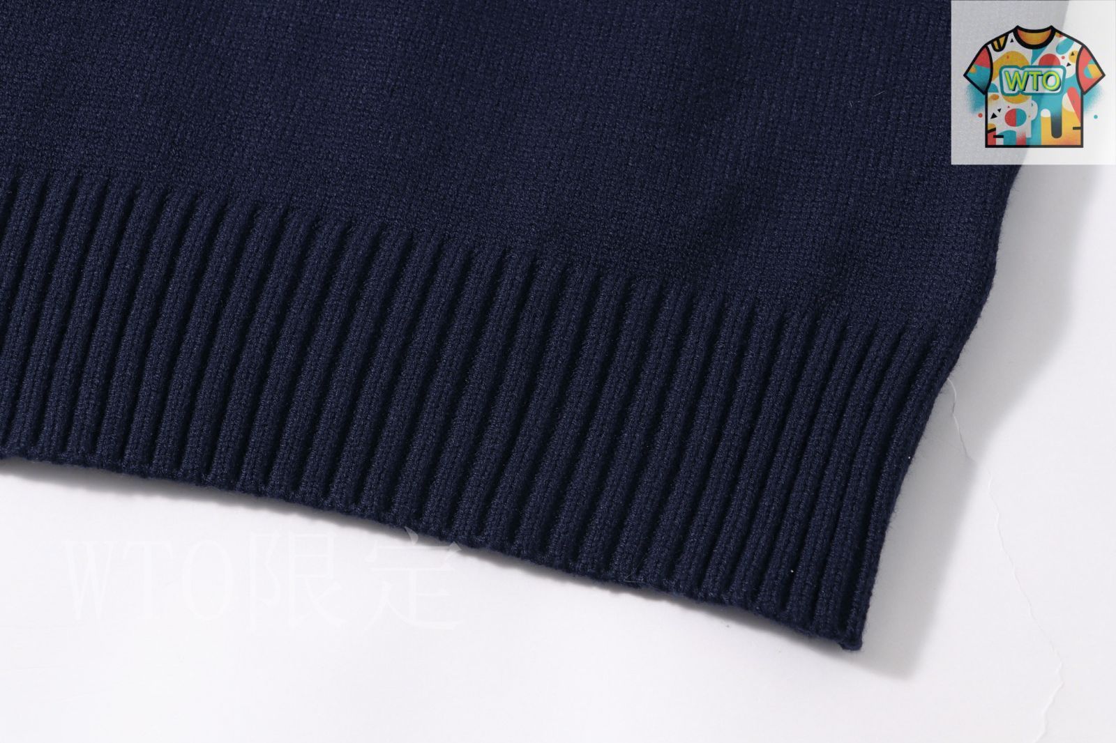 リブニット技法のロゴレターと?接デザインが特色で、クルーネックは汎用性に優れ、さまざまなコーデにマッチします。