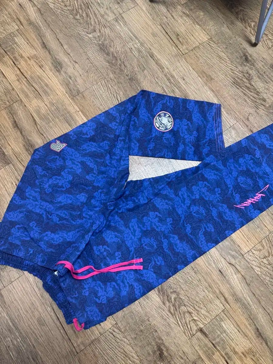 A&P X JAHAN コラボ 柔術 柔道着 ズボン A2 サイズです。目に留まる青い雲 パータンが魅力的です。ピンク色のズボン紐が POINT ポイントとして入っています。日常服としても活用可能な魅力的な パンツで、所蔵価値が高いです ~