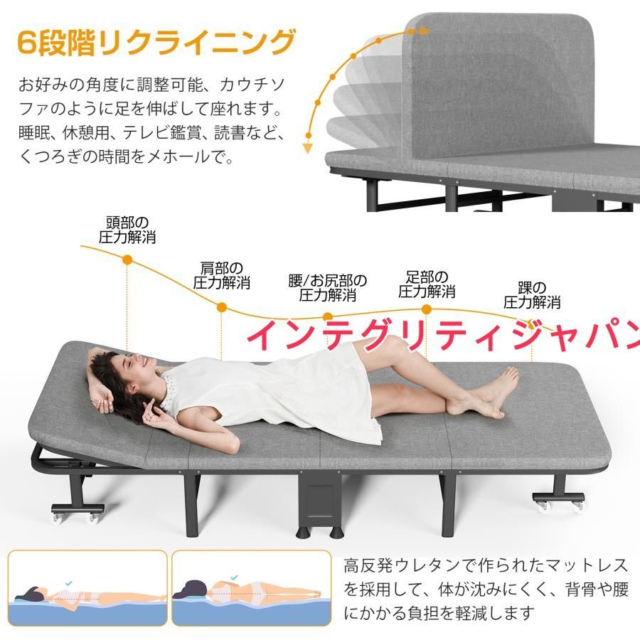 折りたたみベッド シングル コンパクト収納 6段階リクライニング 高反発 マットレス付 四つ折り 簡易ベッド 幅80 cm 耐荷重200 kg おしゃれ キャスター付 収納袋付