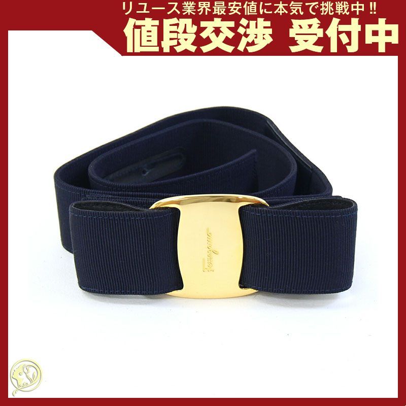 フェラガモベルトヴァラ8046ネイビーゴールド金具キャンバスSサイズ新品リボンレディースファッションSalvatoreFerragamo