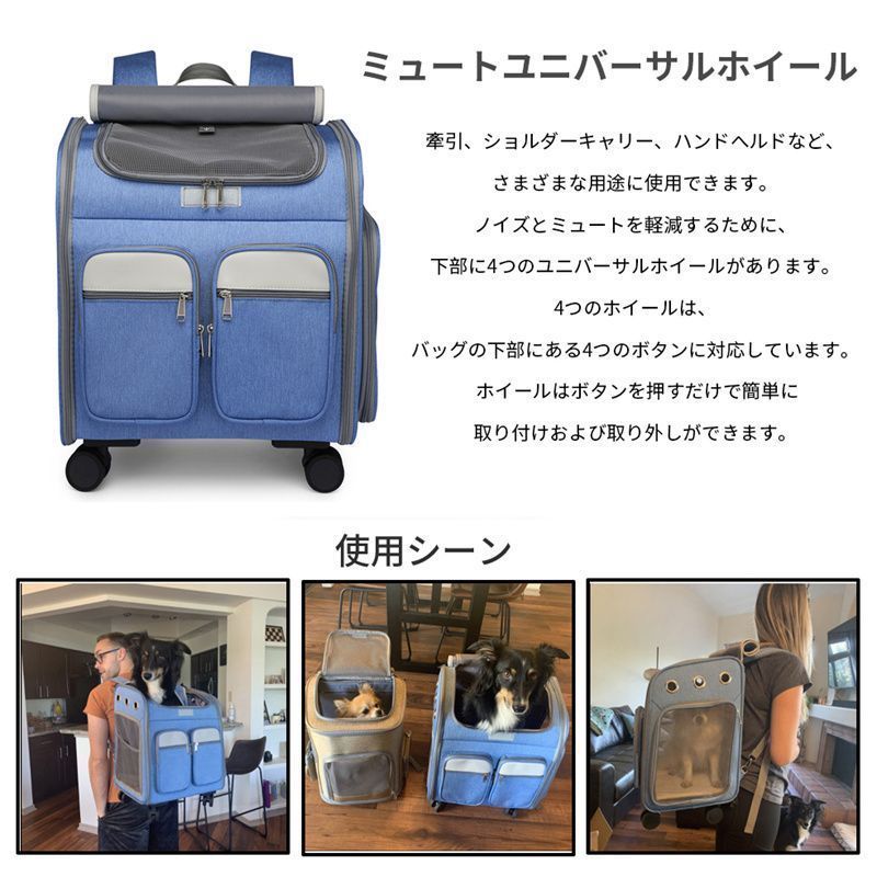 ペットキャリー キャスター付き 猫 猫用 キャリー カート 犬 小型犬 ペット リュックキャリーバッグ 折りたたみ 4 way キャリーケース 通気 安定性 耐荷重10 kg 通気性 散歩 旅行 通院 防災用