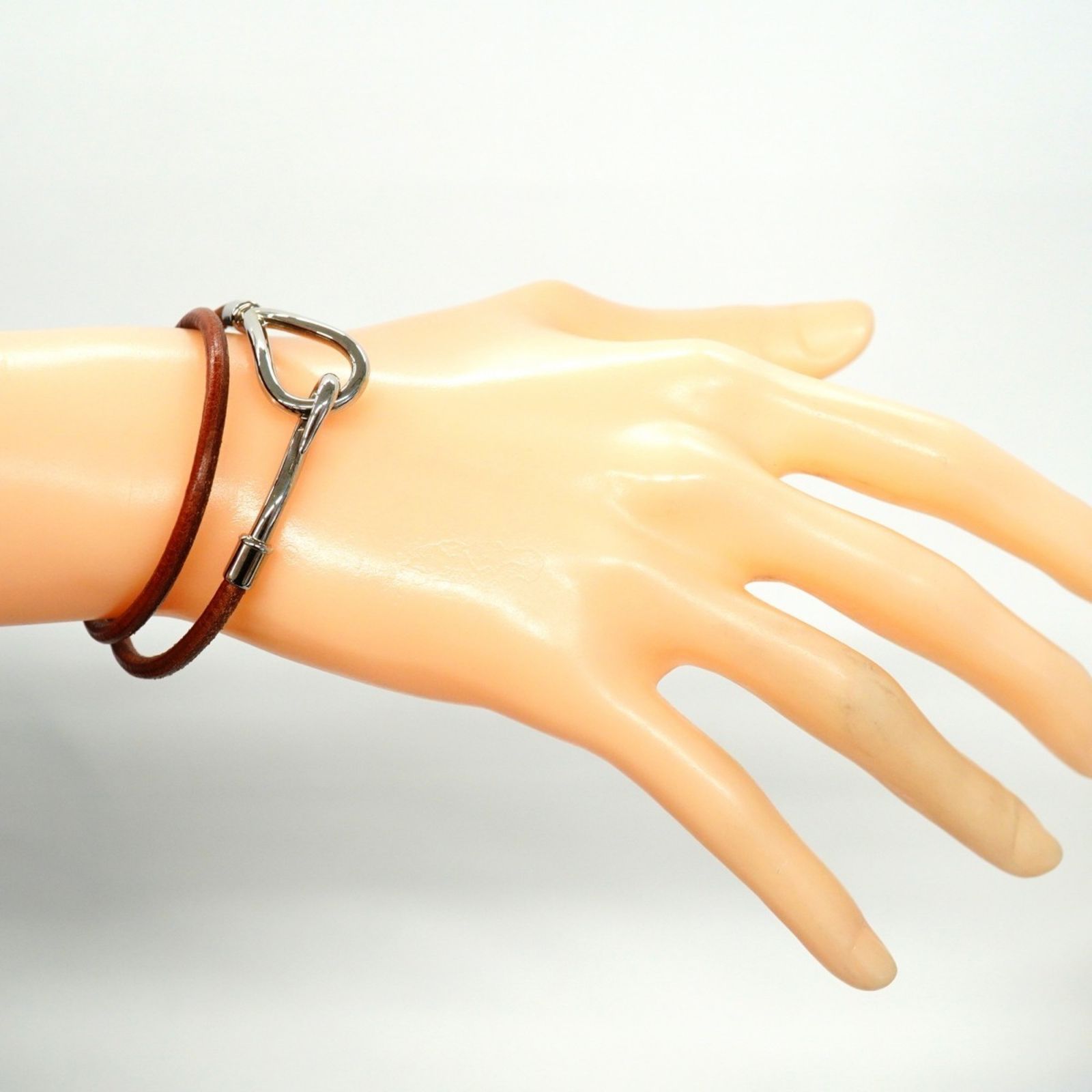 エルメス Hermes ブレスレット ジャンボフック メタル レザー シルバー ブラウンレディース