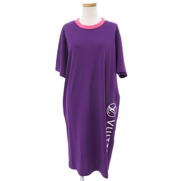 ルイ・ヴィトンからワンピースが入荷しました!パープルカラーの生地にブランドロゴのプリントが施された、カジュアルでオシャレなTシャツワンピース!襟元のピンクカラーが差し色になっていて可愛らしいです☆全体に生地特有の起毛や若干のシワ、肩周りや胸周り・ウエスト周りに白っぽい汚れ、右後首元に汚れが見受けられるためBランクでのご紹介となりました。着用時に目立つダメージや汚れではございませんので、普段着としては問題ない程度かと思います◎