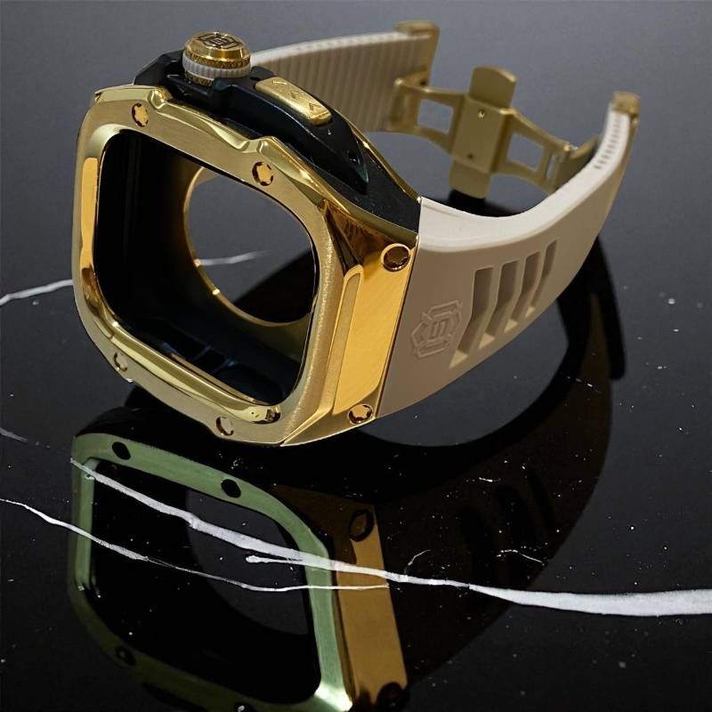 ゴールドケース サンドホワイトラバー Apple Watch Ultra 1 2 3. 49 mm アップルウォッチ ウルトラ カスタム