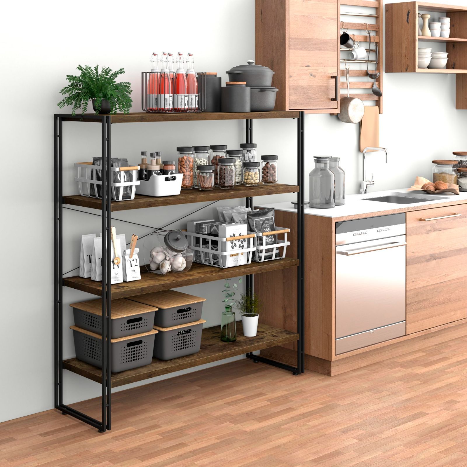 オープンシェルフ おしゃれ ラック 本棚 収納ラック 木製 4段 幅120×奥行30×高さ126 cm
