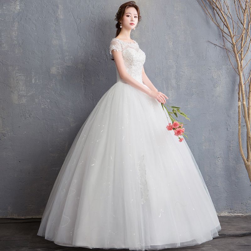 ウェディングドレス一字肩膝丈新婦結婚式韓国風立体フラワーデザインスリムプリンセスウェディングドレス-10.17