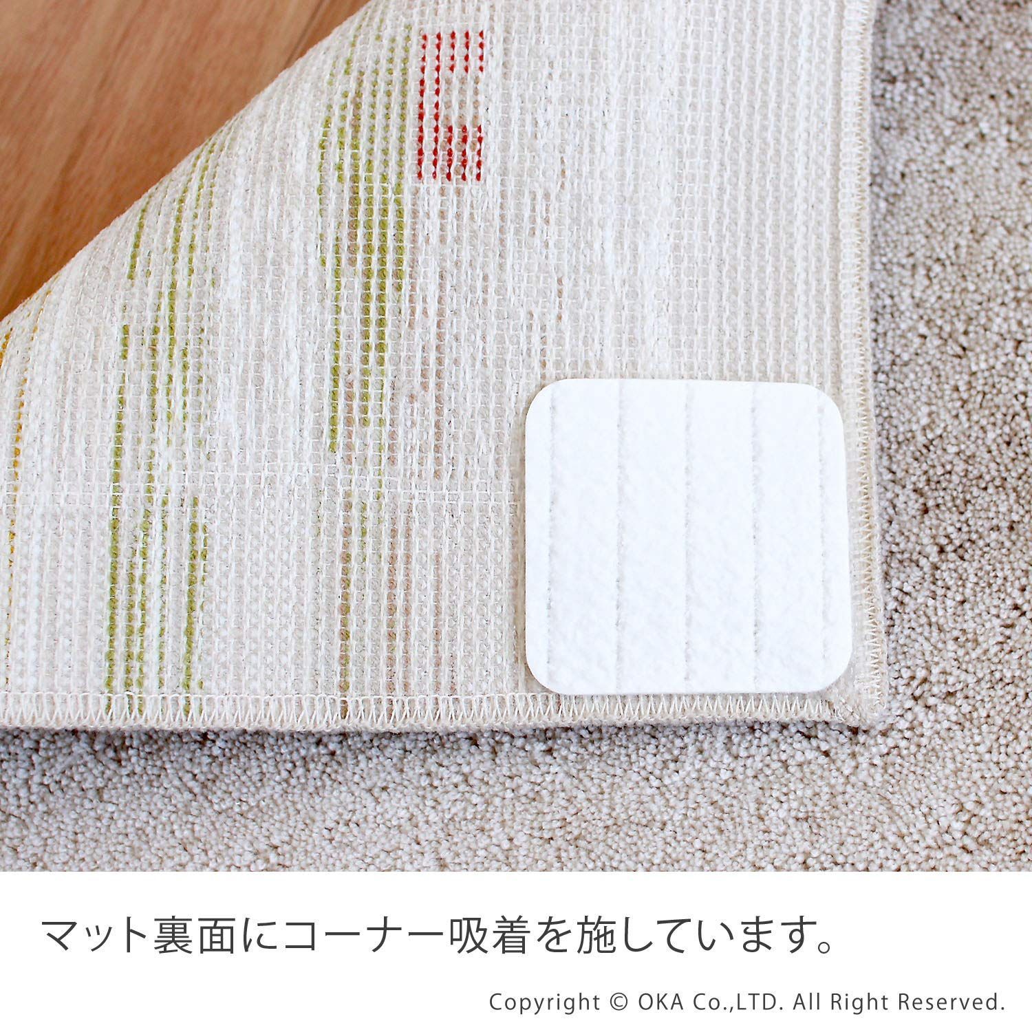 オカ(OKA) ギャベ コーナー吸着玄関マット 約45cm×75cm ベージュ (ギャベ柄 エスニック 洗える 吸着 ラグ カーペット 日本製 大判)