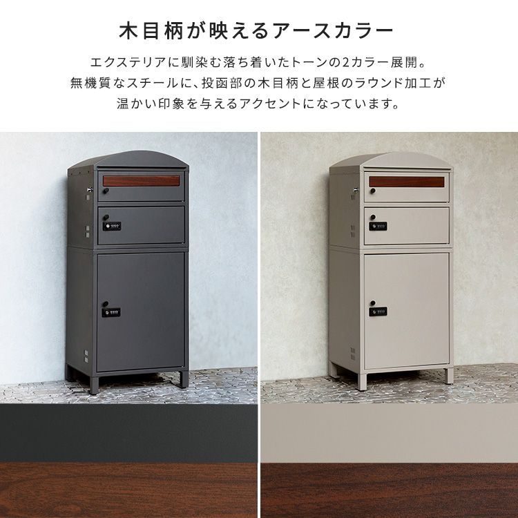 ポスト付き宅配ボックス 宅配3段タイプ ポスト天面ラウンド型 完成品 スリット窓付き 2801