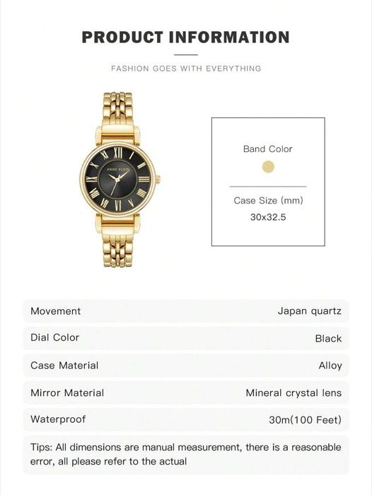 腕時計 レディース クォーツ 女性用カジュアル ゴールドトーン ブレスレット ウォッチ ローマ数字 黒文字盤 ラグジュアリー 防水アナログ 調整 な スチールブレスレット 215