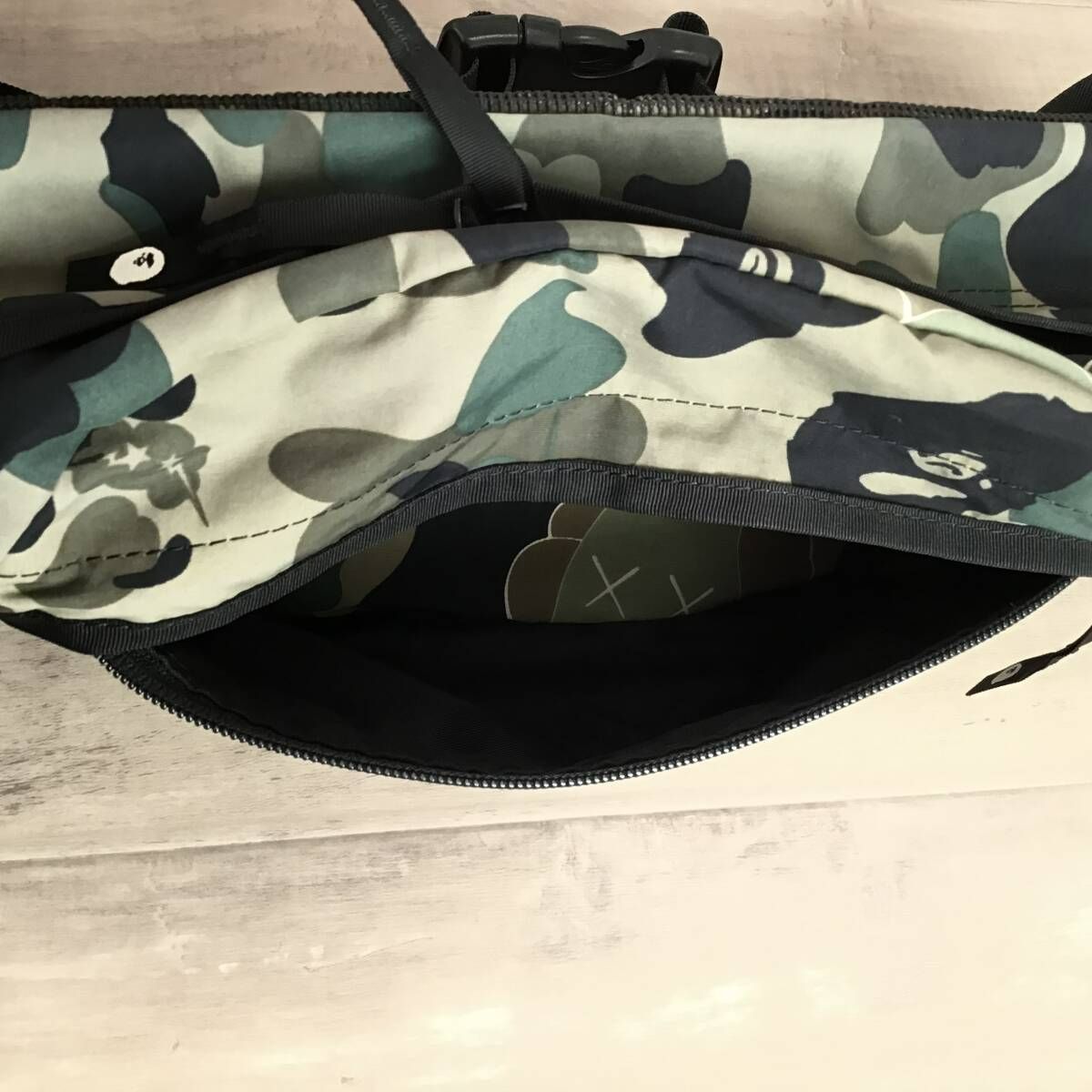激 KAWS bendy 1 st camo green ウエスト バッグ a bathing ape BAPE カウズ エイプ ベイプ アベイシングエイプ waist bag y 5775