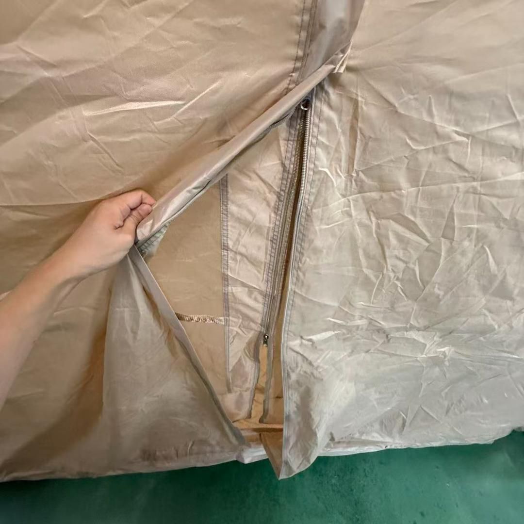 【全方位メッシュ換気|蚊侵入防止ダブルドア】正面・背面の出入口、側面窓に加え、天井部にも大型通気メッシュを採用。TPU窓+煙突口、真夏の厳しい暑さの中でも快適な空気環境を維持します。夏の蒸し暑さ/雨天両対応。