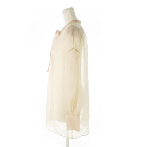 【商品名】クラネ CLANE 23SS シースルーシャツ ボウタイ リボン 長袖 オーバーサイズ 1 S ベージュ /CK22 ■GY30