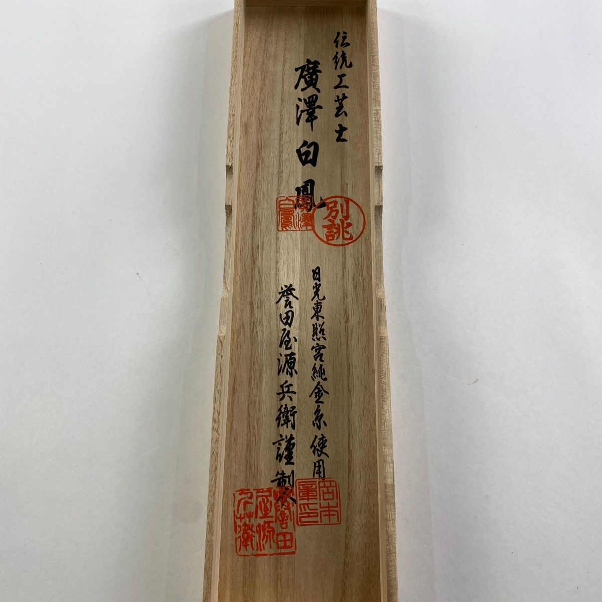 帯締め 秀品 落款 誉田屋源兵衛 廣澤白鳳 銀糸 白 正絹 和装小物