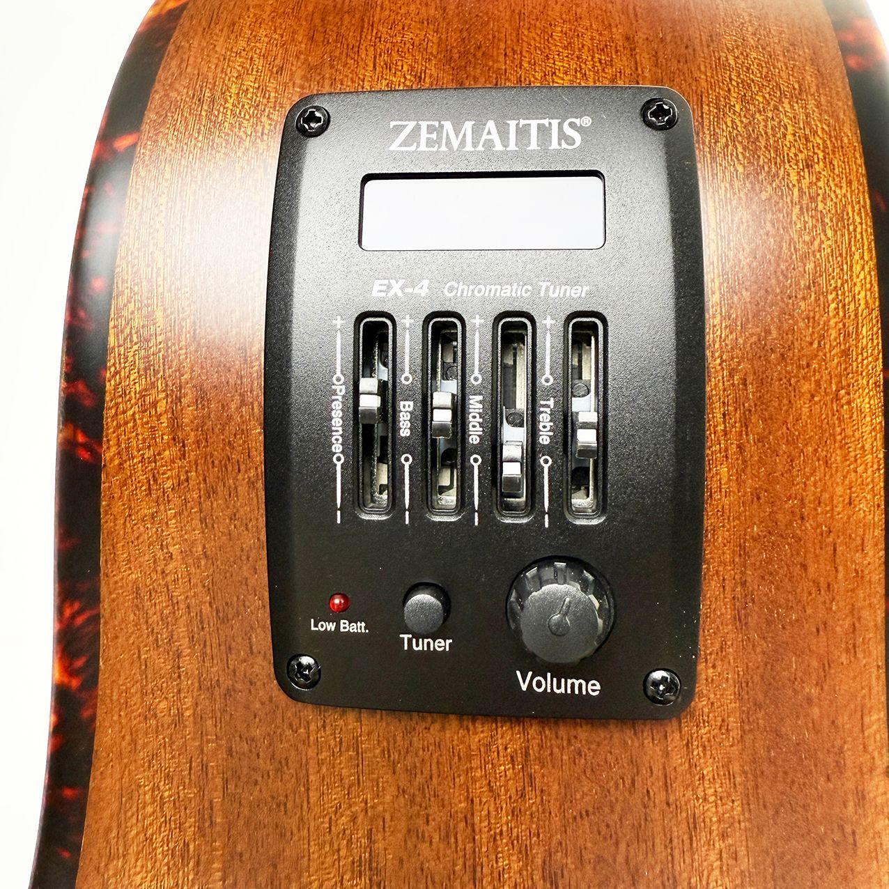 ZEMAITISならではのアバロン装飾と高級感あふれるグロスブラックフィニッシュが魅力のセミアコモデル。
